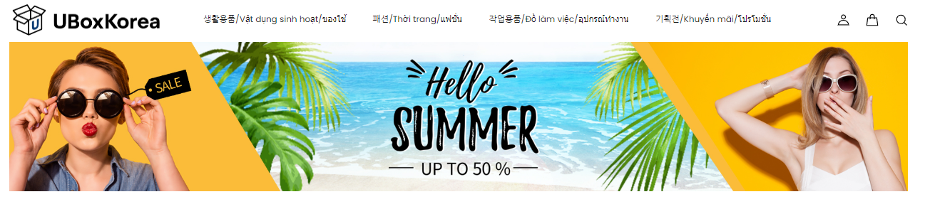 Thẻ (Tiếng Việt): Uboxkorea, ưu đãi mùa hè, mua sắm tiết kiệm, người nước ngoài, giảm giá lớn, sự kiện đặc biệt, đồ gia dụng, hàng khuyến mãi, giảm 90%, sản phẩm hot